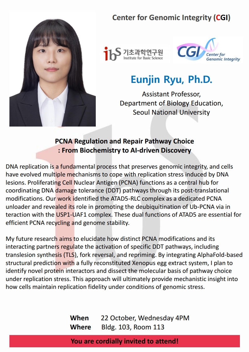 – Speaker : Eunjin Ryu / Assistant Professor, Department of Biology Education, Seoul National University